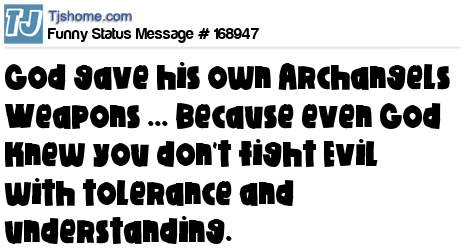 X God gave his own Archangels Weapons ... Because even God knew you don't fight Evil with tolerance and understanding.