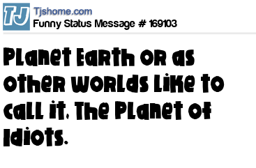 X says Planet Earth or as other worlds like to call it, The Planet of Idiots.