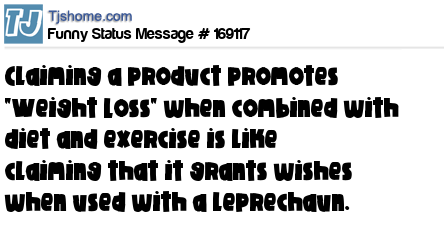 - # 12848 loves infomercials, but claiming that a product promotes weight loss when combined with diet and exercise is like claiming it grants wishes when used with a leprechaun.