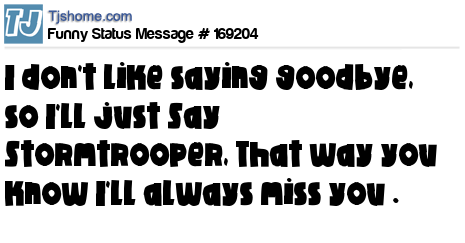 X says I don't like saying goodbye, so I'll just Say Stormtrooper, That way you know I'll always miss you .