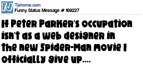 X says If Peter Parker's occupation isn't as a web designer in the new Spider-Man movie I officially give up....