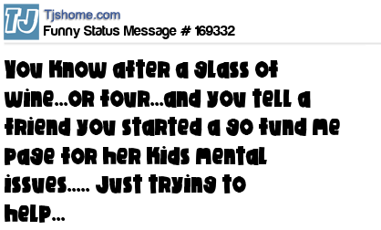 X says You know after a glass of wine...or four...and you tell a friend you started a go fund me page for her kids mental issues..... Just trying to help...