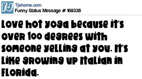 X says Love hot yoga because it's over 100 degrees with someone yelling at you. It's like growing up Italian in Florida.