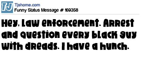 X says Hey, law enforcement. Arrest and question every black guy with dreads. I have a hunch.