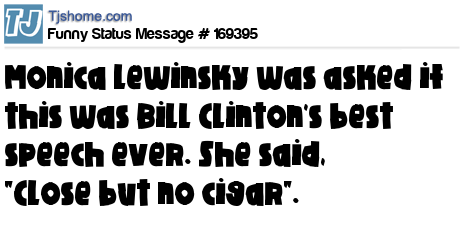 X Monica Lewinsky was asked if this was Bill Clinton's best speech ever. She said, "Close but no cigar".