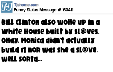 X Bill Clinton also woke up in a White House built by sl@ves. Okay, Monica didn't actually build it nor was she a sl@ve, well sorta...