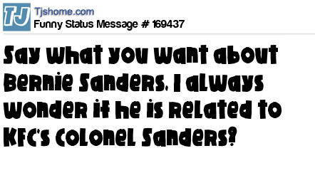 X says Say what you want about Bernie Sanders, I always wonder if he is related to KFC's Colonel Sanders?