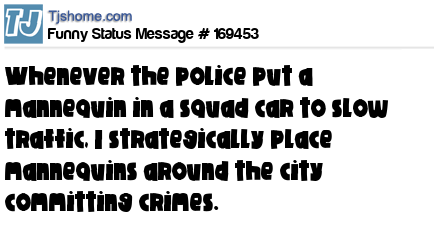 X says Whenever the police put a mannequin in a squad car to slow traffic, I strategically place mannequins around the city committing crimes.