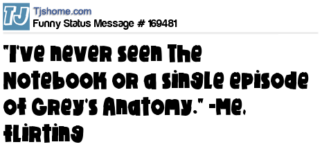 X says "I've never seen The Notebook or a single episode of Grey's Anatomy." -Me, flirting