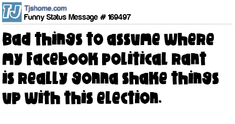 X says Bad things to assume where my Facebook political rant is really gonna shake things up with this election.