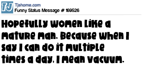 X says Hopefully women like a mature man. Because when I say I can do it multiple times a day, I mean vacuum.