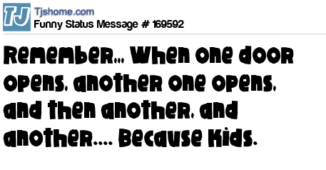 X says Remember,,, When one door opens, another one opens, and then another, and another.... Because kids.