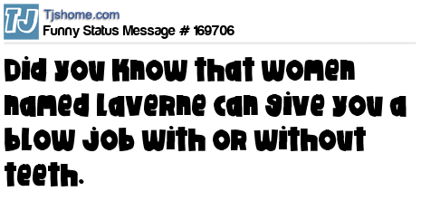 X says Did you know that women named Laverne can give you a blow job with or without teeth.