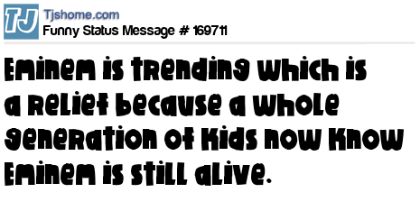 X says Eminem is trending which is a relief because a whole generation of kids now know Eminem is still alive.