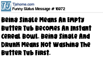X Being Single Means An Empty Butter Tub Becomes An Instant Cereal Bowl. Being Single And Drunk Means Not Washing The Butter Tub First.