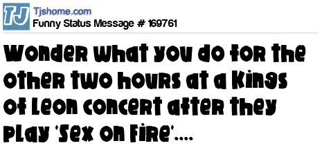 X says Wonder what you do for the other two hours at a Kings of Leon concert after they play 'Sex on Fire'....