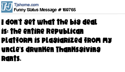 X says I don't get what the big deal is: the entire Republican platform is plagiarized from my uncle's drunken Thanksgiving rants.