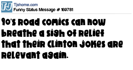 X says 90's road comics can now breathe a sigh of relief that their Clinton jokes are relevant again.
