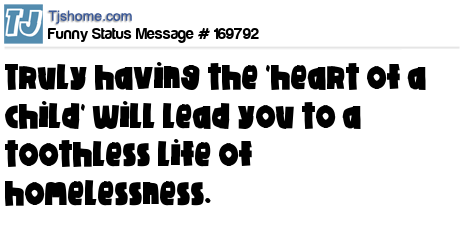 X says Truly having the 'heart of a child' will lead you to a toothless life of homelessness.