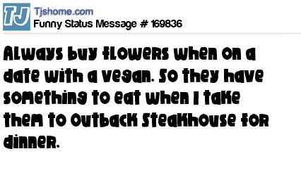 X says Always buy flowers when on a date with a vegan. So they have something to eat when I take them to Outback Steakhouse for dinner.
