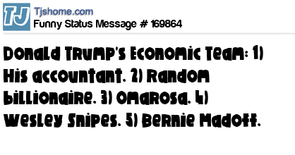 X says Donald Trump's Economic Team: 1) His accountant. 2) Random billionaire. 3) Omarosa. 4) Wesley Snipes. 5) Bernie Madoff.
