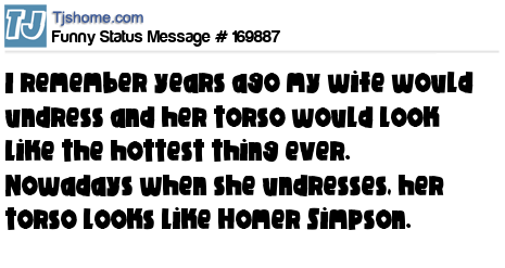 X I remember years ago my wife would undress and her torso would look like the hottest thing ever. Nowadays when she undresses, her torso looks like Homer Simpson.