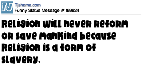 X says Religion will never reform or save mankind because Religion is a form of slavery.