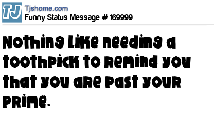 X says Nothing like needing a toothpick to remind you that you are past your prime.
