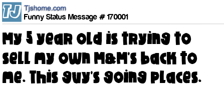 X says My 5 year old is trying to sell my own M&M's back to me. This guy's going places.