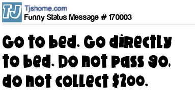 X says Go to bed. Go directly to bed. Do not pass go, do not collect $200.