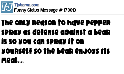 X says The only reason to have pepper spray as defense against a bear is so you can spray it on yourself so the bear enjoys its meal....