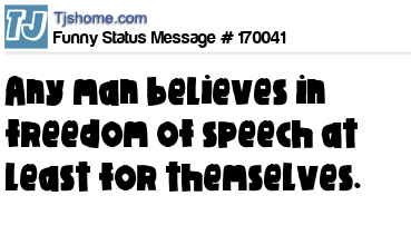 - # 148465 Freedom of Speech means you the right to say whatever you want whenever you want, but it doesn't exempt you from the consequences of free speech. If you can't handle the consequences of freedom of speech, you probably shouldn't be speaking.