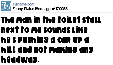X says The man in the toilet stall next to me sounds like he’s pushing a car up a hill and not making any headway.