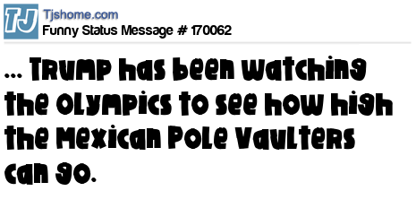 X ... Trump has been watching the Olympics to see how high the Mexican Pole Vaulters can go.