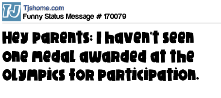 X says Hey parents: I haven't seen one medal awarded at the Olympics for participation.