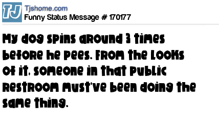 X says My dog spins around 3 times before he pees. From the looks of it, someone in that public restroom must've been doing the same thing.