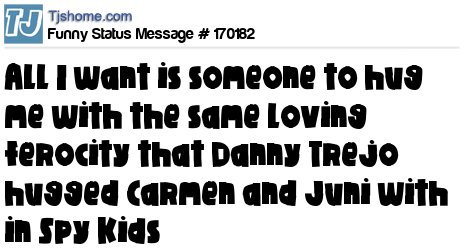 X says All I want is someone to hug me with the same loving ferocity that Danny Trejo hugged Carmen and Juni with in Spy Kids