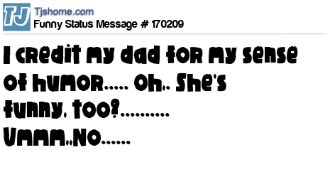 X says I credit my dad for my sense of humor..... Oh,. She's funny, too?.......... Ummm,,No......