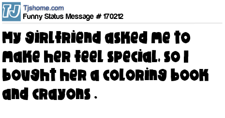 X says My girlfriend asked me to make her feel special, so I bought her a coloring book and crayons .