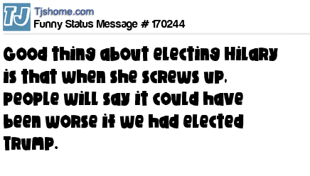 X says Good thing about electing Hilary is that when she screws up, people will say it could have been worse if we had elected Trump.