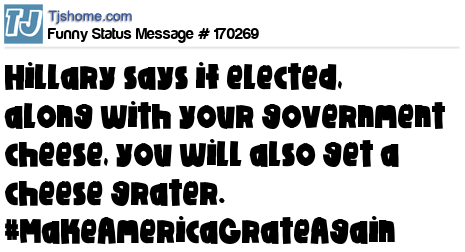 X says Hillary says if elected, along with your government cheese, you will also get a cheese grater. #MakeAmericaGrateAgain