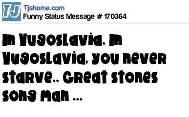 X says In Yugoslavia. In Yugoslavia, you never starve.. Great stones song man ...