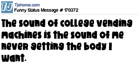 X says The sound of college vending machines is the sound of me never getting the body I want.