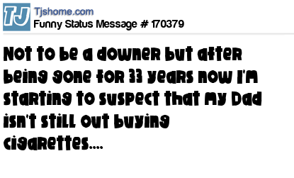 X says Not to be a downer but after being gone for 33 years now I'm starting to suspect that my Dad isn't still out buying cigarettes....