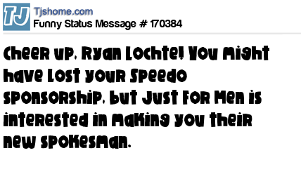 X says Cheer up, Ryan Lochte! You might have lost your Speedo sponsorship, but Just For Men is interested in making you their new spokesman.
