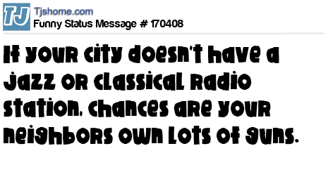 X says If your city doesn't have a jazz or classical radio station, chances are your neighbors own lots of guns.