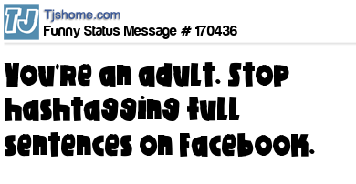 X says You're an adult. Stop hashtagging full sentences on Facebook.