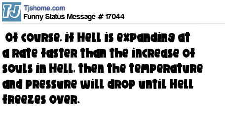 X says Of course, if Hell is expanding at a rate faster than the increase of souls in Hell, then the temperature and pressure will drop until Hell freezes over.