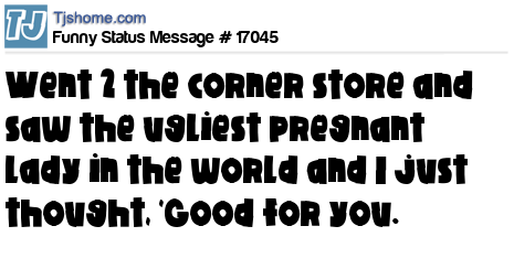 X has went 2 the corner store and saw the ugliest pregnant lady in the world and I just thought, 'Good for you.
