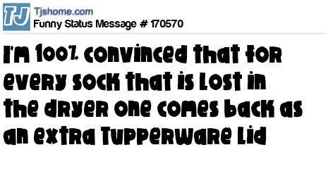 X says I'm 100% convinced that for every sock that is lost in the dryer one comes back as an extra Tupperware lid